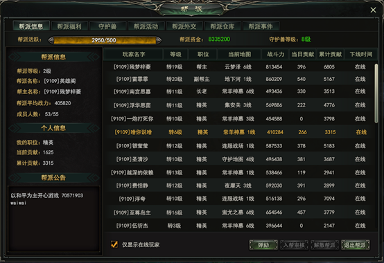 帮派祈福:消耗铜钱或元宝对帮派进行祈福,可增加帮派活跃度和获得个人帮贡。