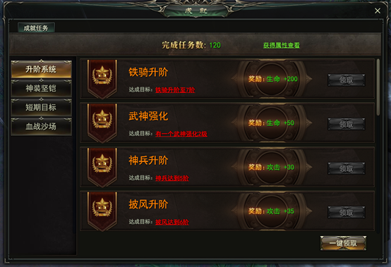 成就任务,通过达成成就需求完成成就任务,可获得玩家属性。
