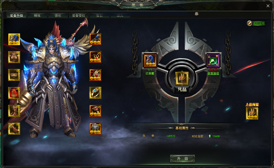 装备升级的材料从国家BOSS、连服BOSS、个人BOSS、天空之城BOSS、国家任务和装备任务中获取。